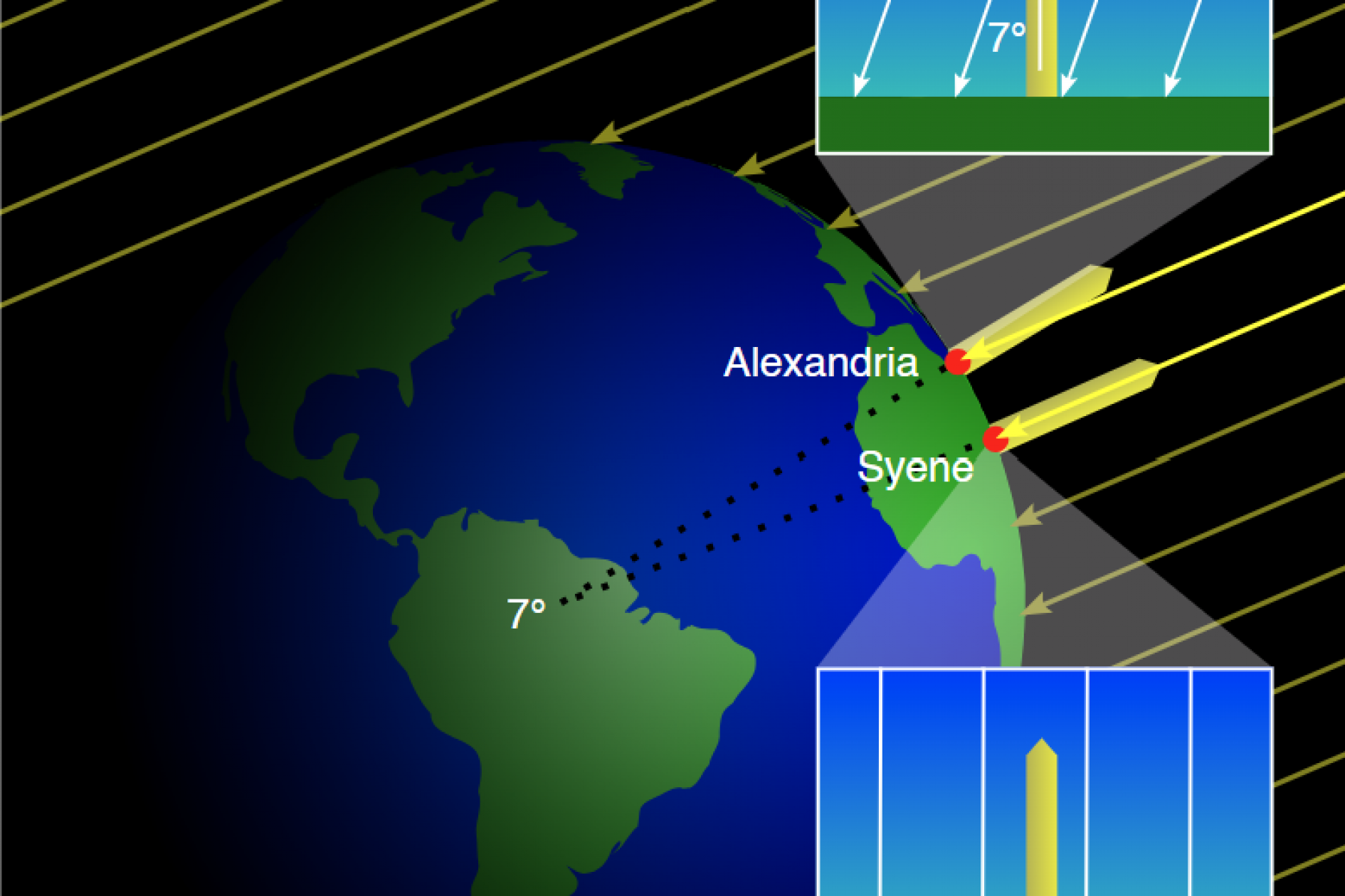 Heel veel scholen organiseren uitwisselingen met buitenlandse scholen. Ook als science- en techniekdocent kun je als begeleider bij een dergelijke activiteit betrokken raken. Vaak bestaat het programma uit op cultuur en geschiedenis gerichte excursies en projecten. Ook op het gebied van science en techniek zijn leuke, landoverstijgende projecten te bedenken. Zo stofte ik voor een uitwisseling het eeuwenoude experiment van Eratosthenes van Cyrene (ca. 276 – 194 voor Christus) af tot een leuk project waarmee de leerlingen in de voorbereiding op de uitwisseling al mee begonnen.